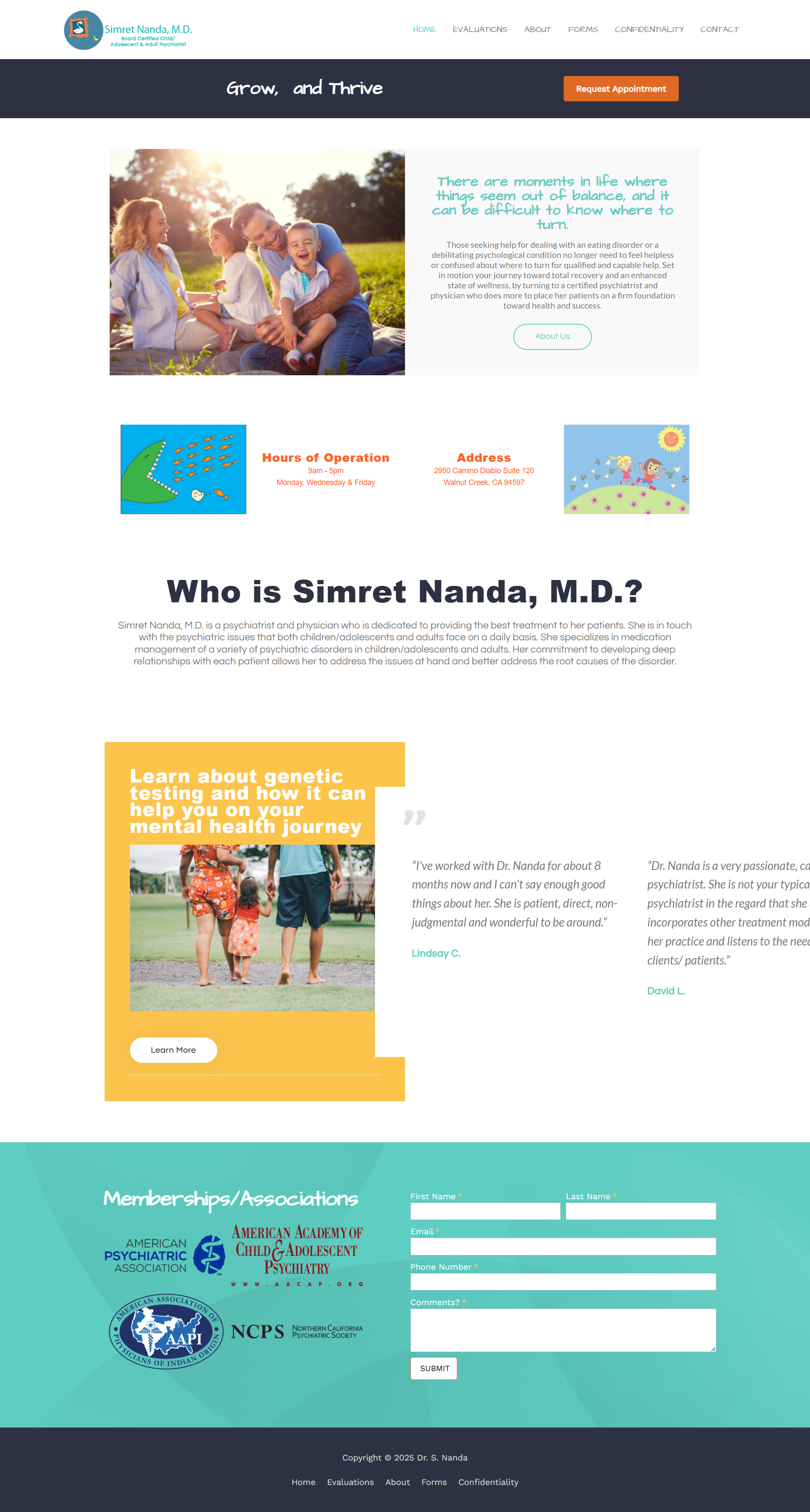 Here in the San Francisco Bay area, Dr. Nanda provides psychiatric evaluation and treatment for children, teens, young adults and adults while working at a variety of places including her private practice office and a community mental health center. She is an expert in treatment eating disorders such a anorexia, bulimia, and binge-eating disorder and has experience working in eating disorder residential treatment programs. She also provides telepsychiatry services for established private practice patients and is up to date on all the new psychiatric medications that are currently on the market. She has a history of working as a sub-investigator in pharmaceutical research getting new medications approved by the FDA. She also has experience with ordering the new genetic testing for psychiatric medications.